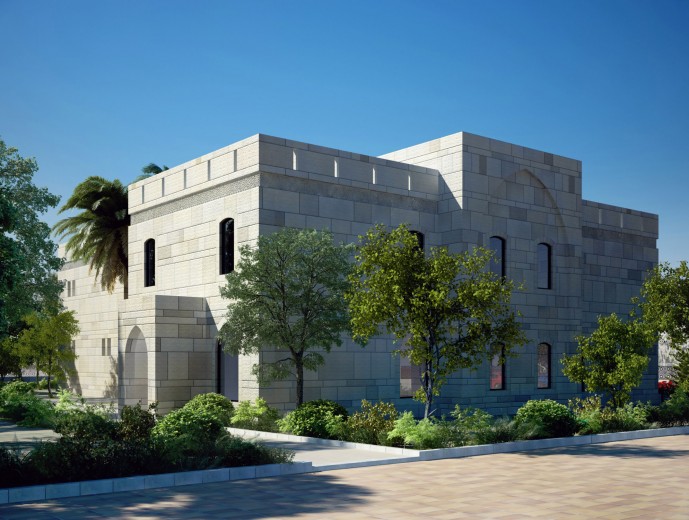 The building has glimpses of modern treatment in the glass and stone details, thus giving the Islamic building a fresh look that suits the vision of this governmental institution.